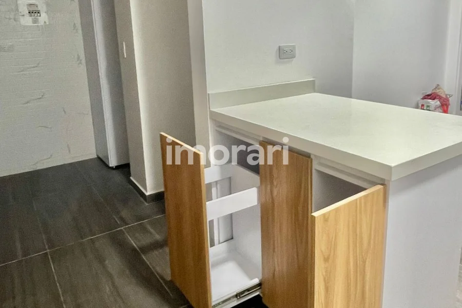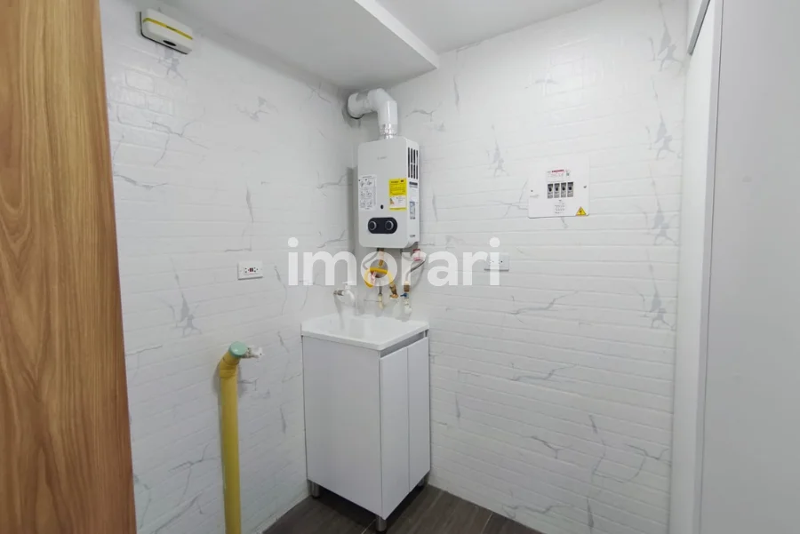Dispone de dos habitaciones con clóset, dos baños, sala-comedor, balcón, cocina integral y zona de lavado equipada con muebles. Los baños cuentan con divisiones en vidrio, muebles funcionales y espejos con luz LED touch. Las habitaciones tienen persianas enrollables, y la sala cuenta con panel japonés. Incluye además calentador de paso para la ducha.
