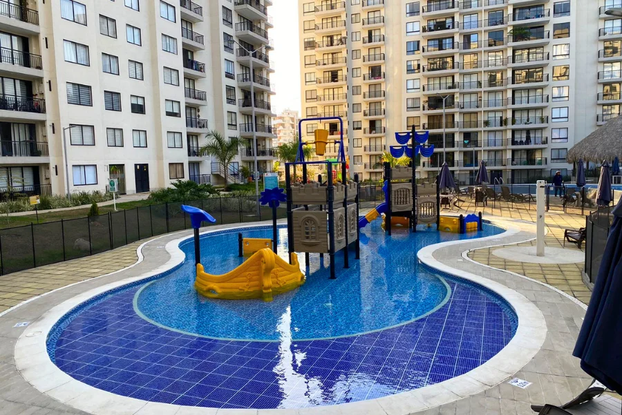 El conjunto ofrece completas zonas sociales y de recreación, como portería con seguridad, dos piscinas (adultos y niños), jacuzzis, parque infantil, zona BBQ, kiosco social, gimnasio al aire libre, ascensores, salidas de emergencia y parqueaderos para visitantes.