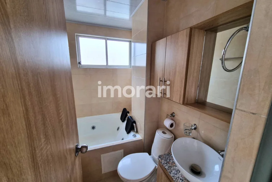 Cuenta con área de 60 m², distribuidos en sala comedor con bar, cocina integral, balcón, 3 habitaciones (la principal con baño privado y jacuzzi) y 2 baños en total.