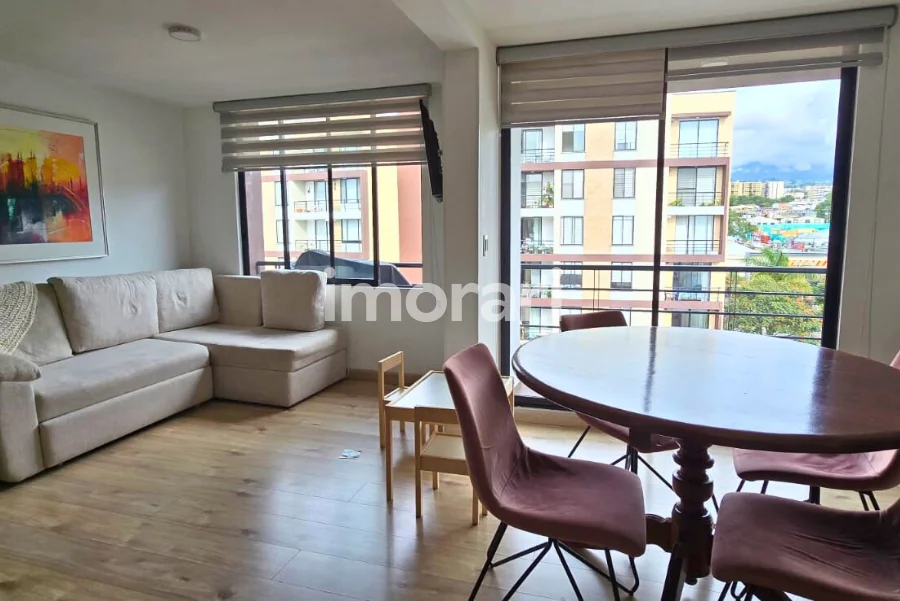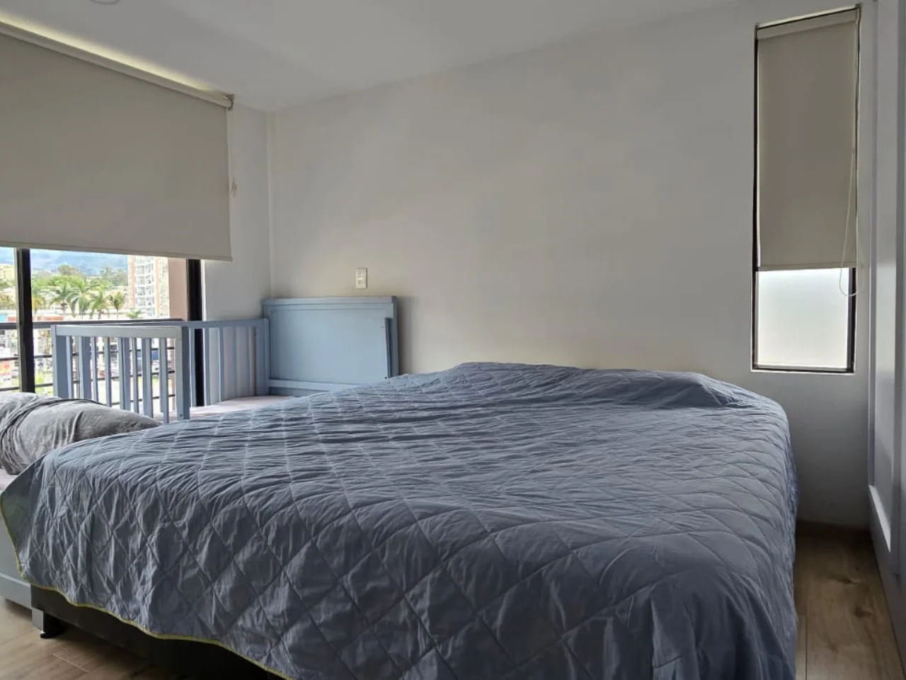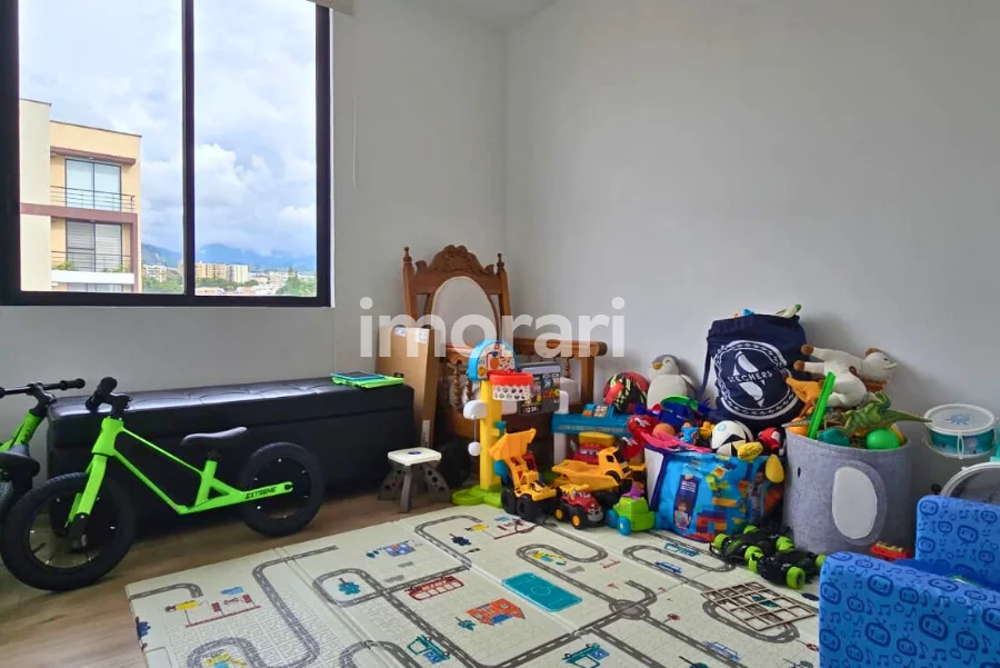 Este moderno apartamento cuenta con amplios espacios y excelentes acabados. Tiene cocina abierta tipo americano, sala-comedor, tres habitaciones (la principal con baño privado y vestier), sala multiservicios, zona de lavandería, baño auxiliar y dos balcones que ofrecen una excelente iluminación y ventilación natural. Incluye parqueadero cubierto.