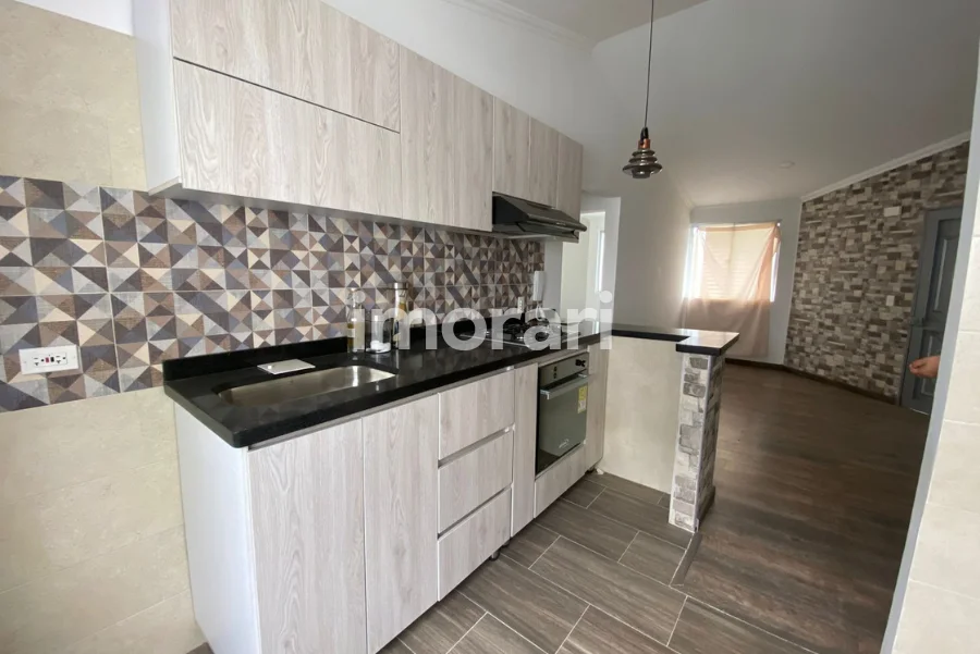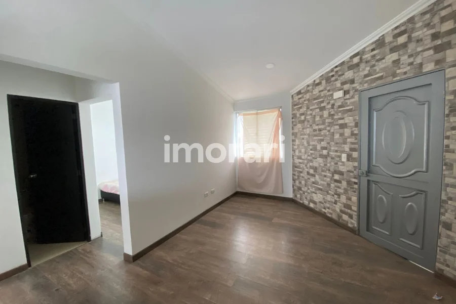 Su distribución incluye 2 habitaciones, 1 baño, sala comedor, cocina integral y zona de lavandería, además de un espacio adicional que puede ser utilizado como almacenamiento.