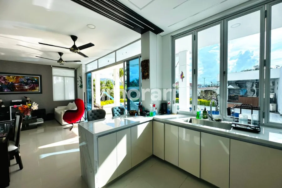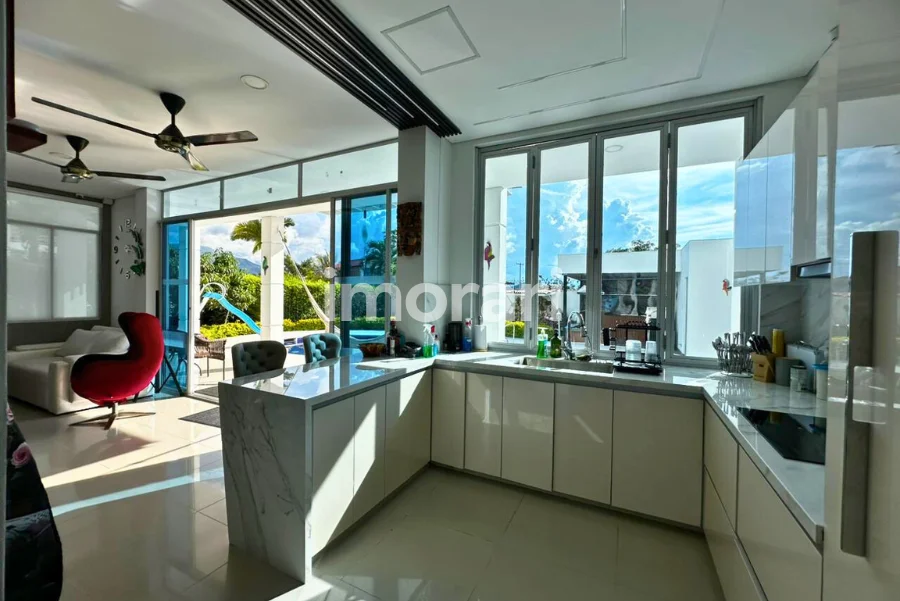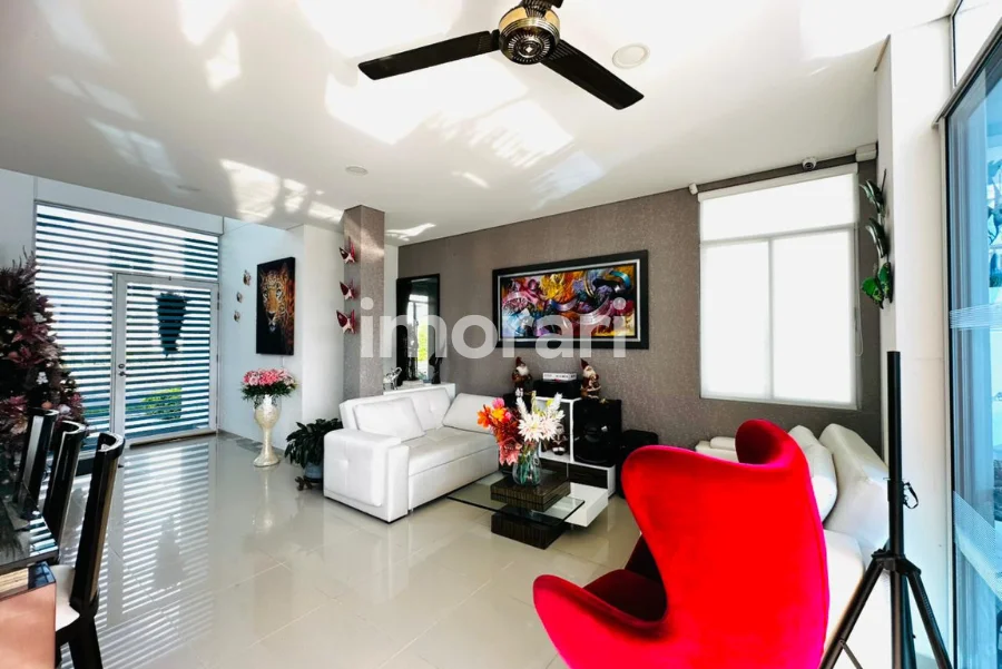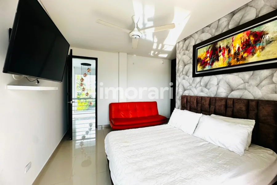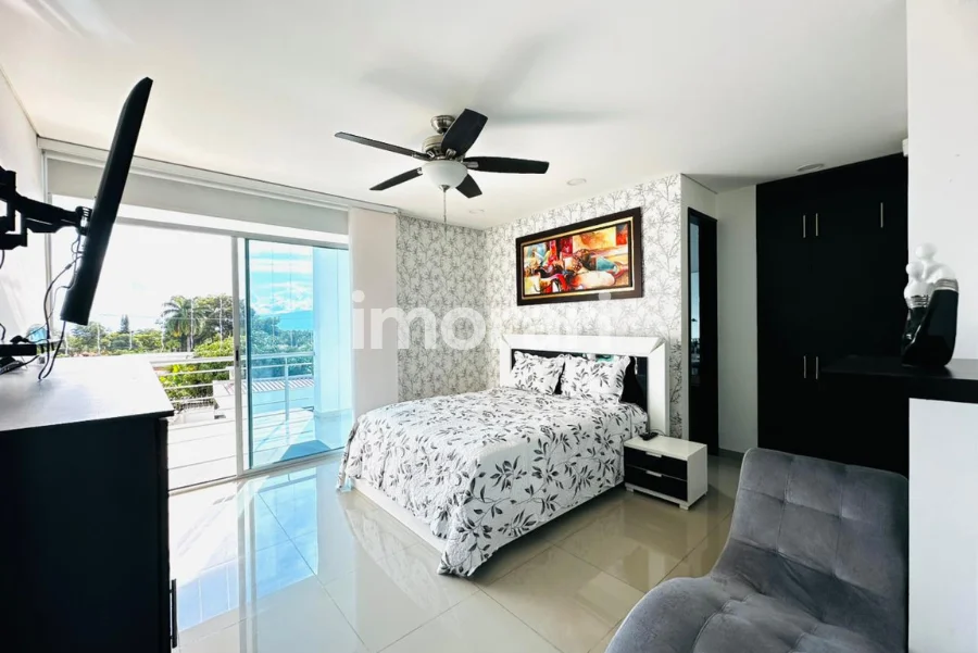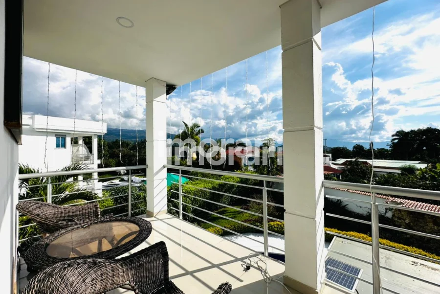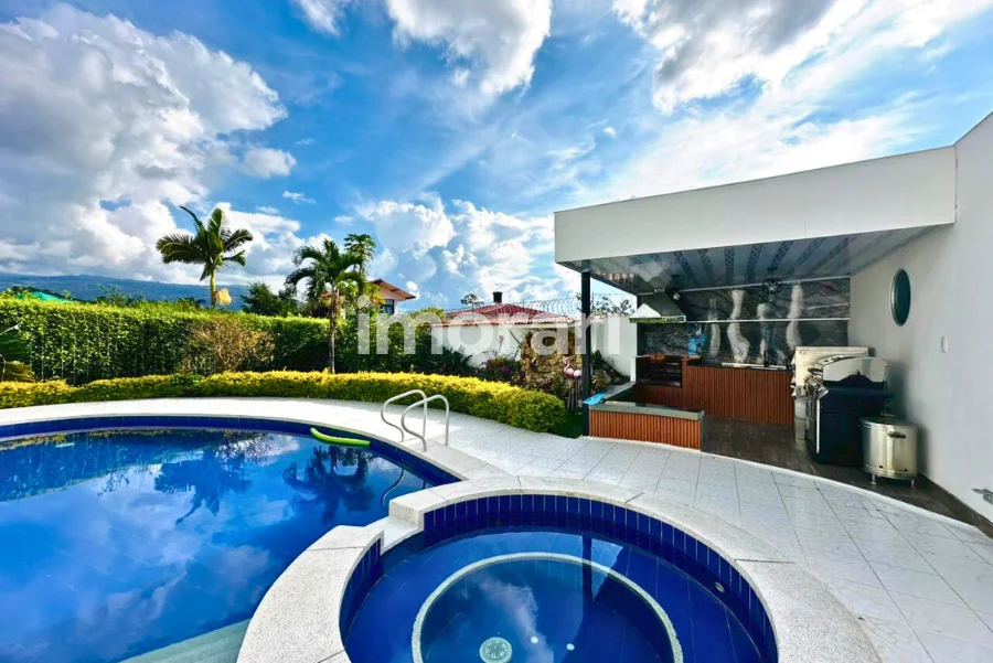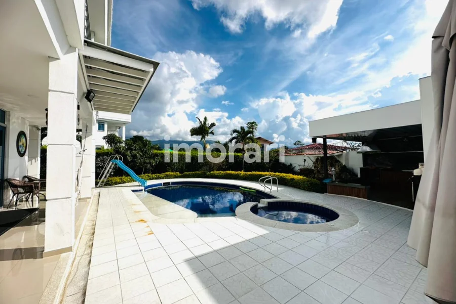Dispone de 4 habitaciones, 6 baños y un amplio balcón trasero, ideal para disfrutar de la vista y la tranquilidad del entorno. Sus zonas de bienestar incluyen piscina privada, jacuzzi y turco con capacidad para 15 personas, creando un ambiente perfecto para el descanso y la recreación.