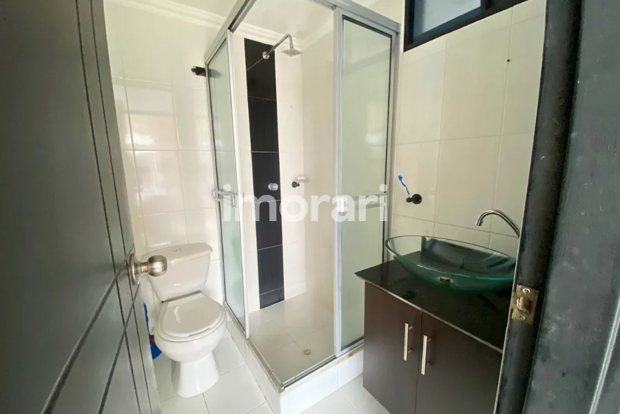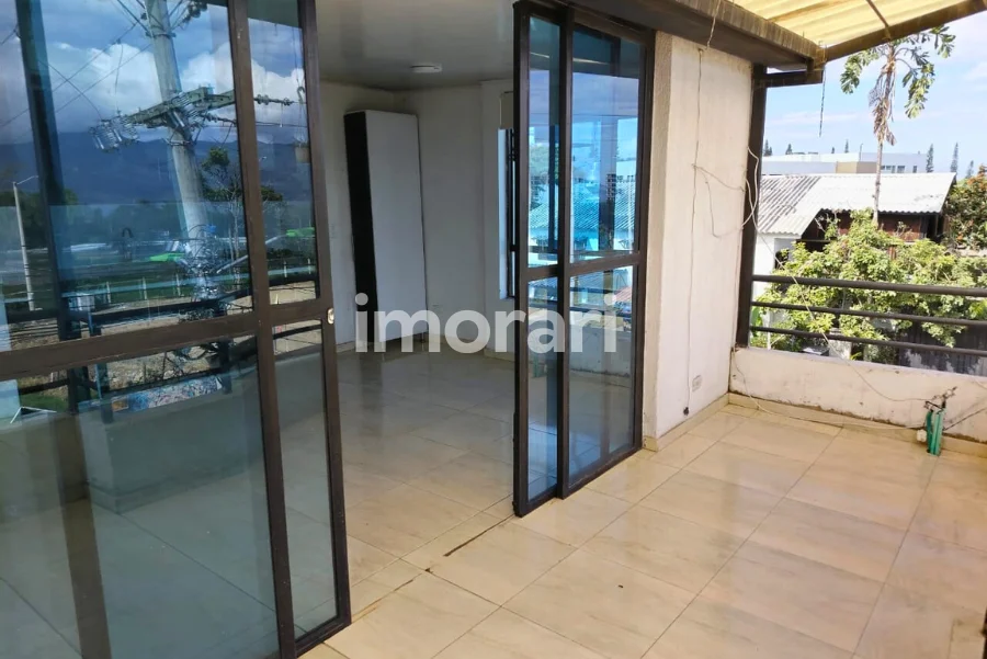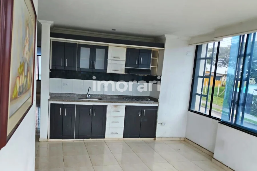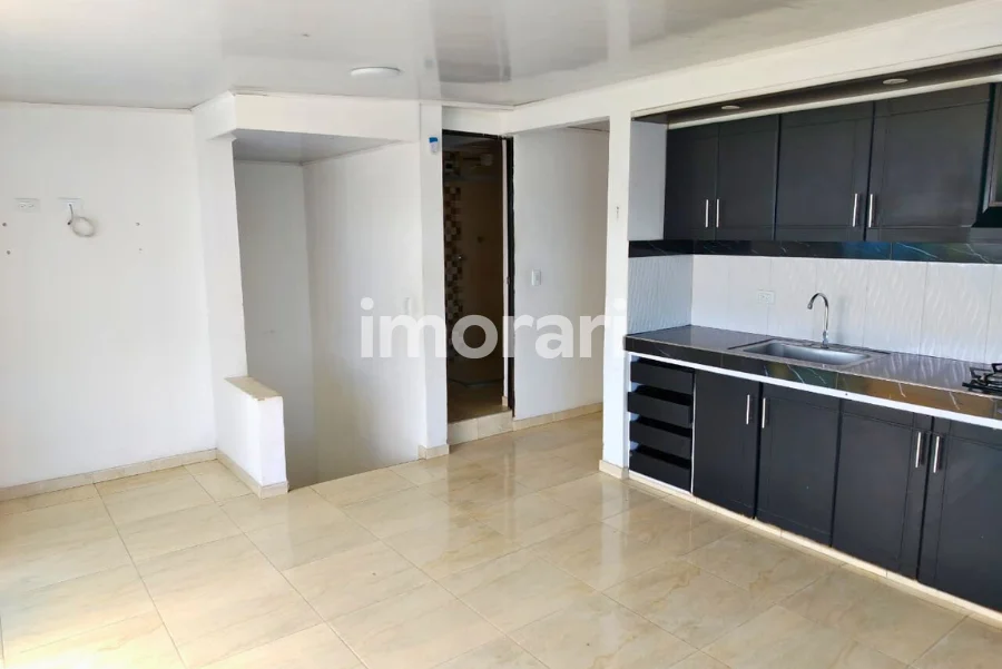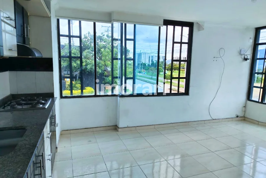 El segundo nivel cuenta con otro apartamento con distribución similar: sala comedor, cocina abierta, baño social, área de ropas, alcoba principal con baño privado y dos habitaciones auxiliares.