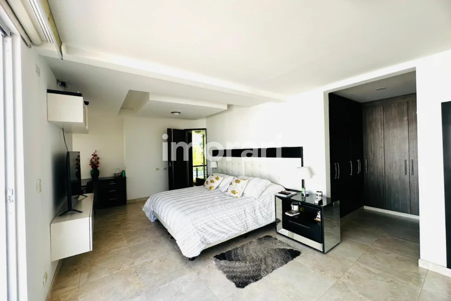 En el segundo nivel se encuentra la habitación principal, con vestier, balcón, excelente vista y baño privado, además de tres habitaciones auxiliares, todas con baño privado, una de ellas con terraza.