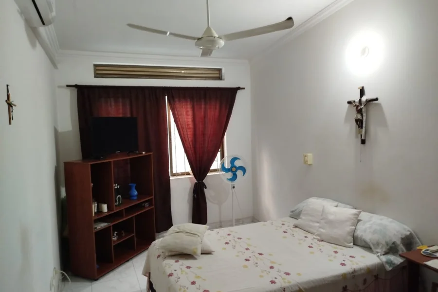 Tres habitaciones amplias con clóset en madera nogal y puertas en la misma madera. Dispone de dos baños, cada uno con tanque de almacenamiento de agua de 1.000 litros. Incluye una sala adicional que puede funcionar como estudio, oficina o incluso como una cuarta habitación. La habitación principal cuenta con un mueble extra en madera nogal.