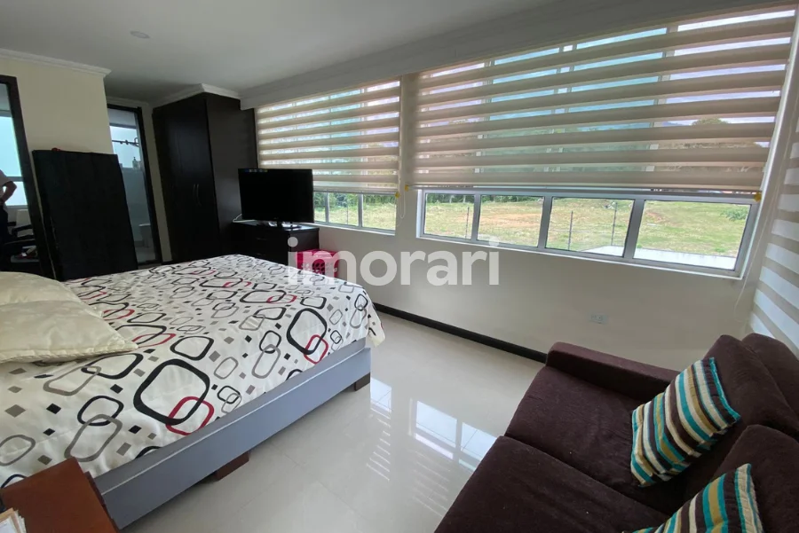 En el segundo piso, la casa cuenta con dos habitaciones auxiliares, cada una con su clóset, baño social, hall de alcobas y una amplia habitación principal con clóset y baño privado.
