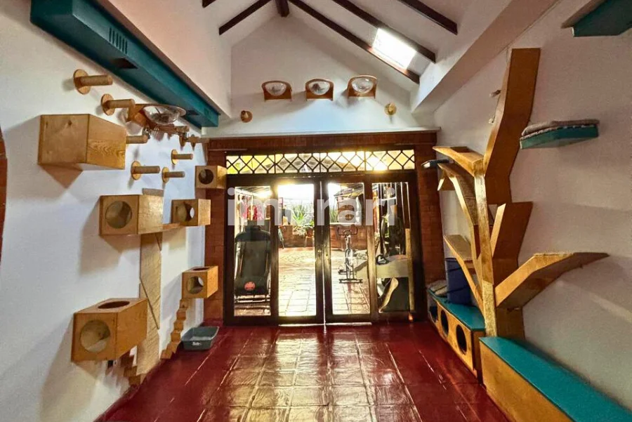 Con un terreno de 1.531 m² y 400 m² construidos, la propiedad ofrece amplios y luminosos espacios: sala-comedor, cocina integral, zona de ropas, 5 habitaciones (3 con baño privado), jacuzzi, 5 baños en total, 2 patios traseros y jardines que rodean toda la casa.