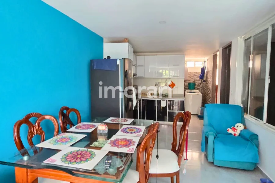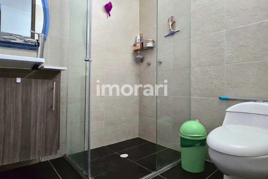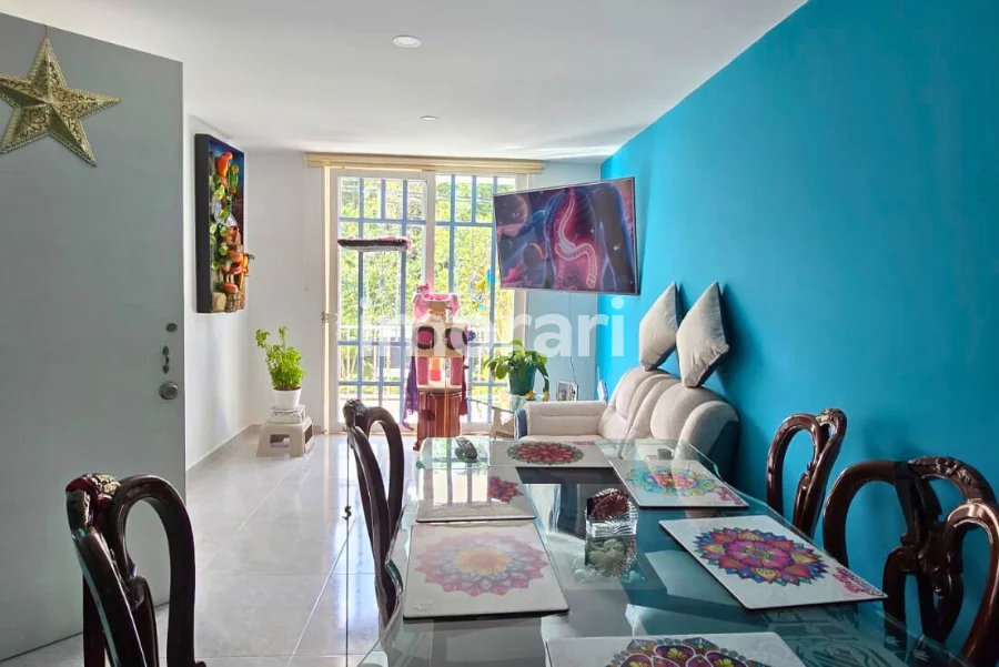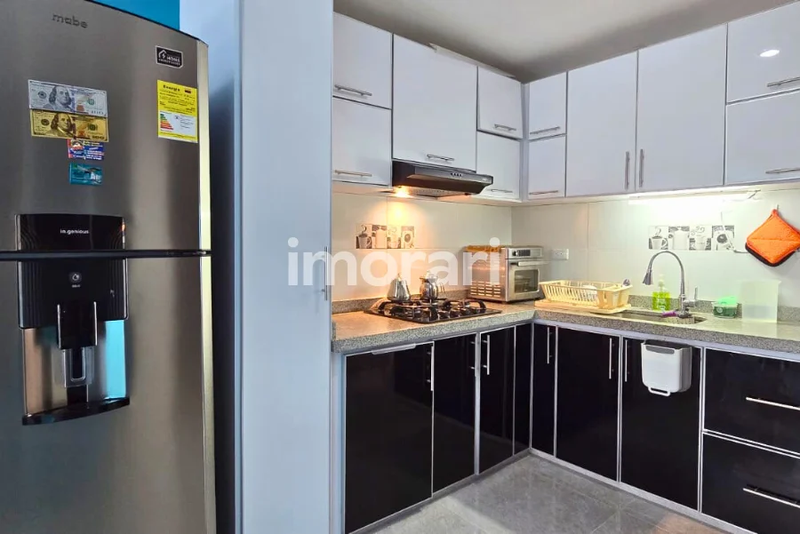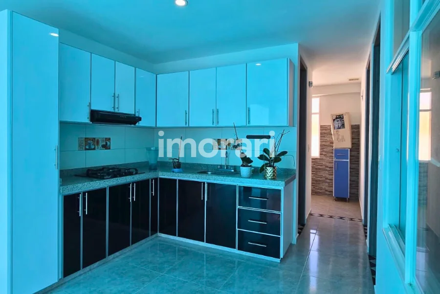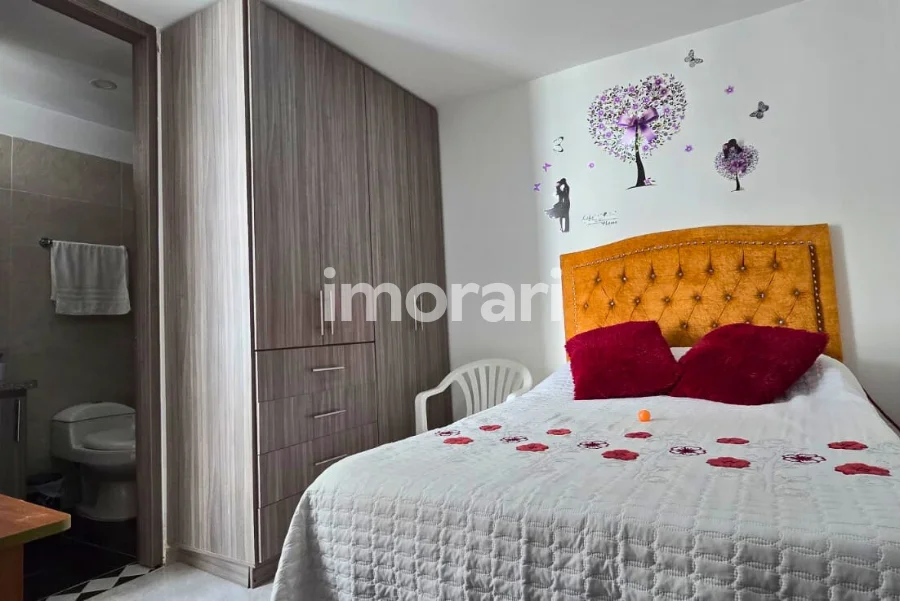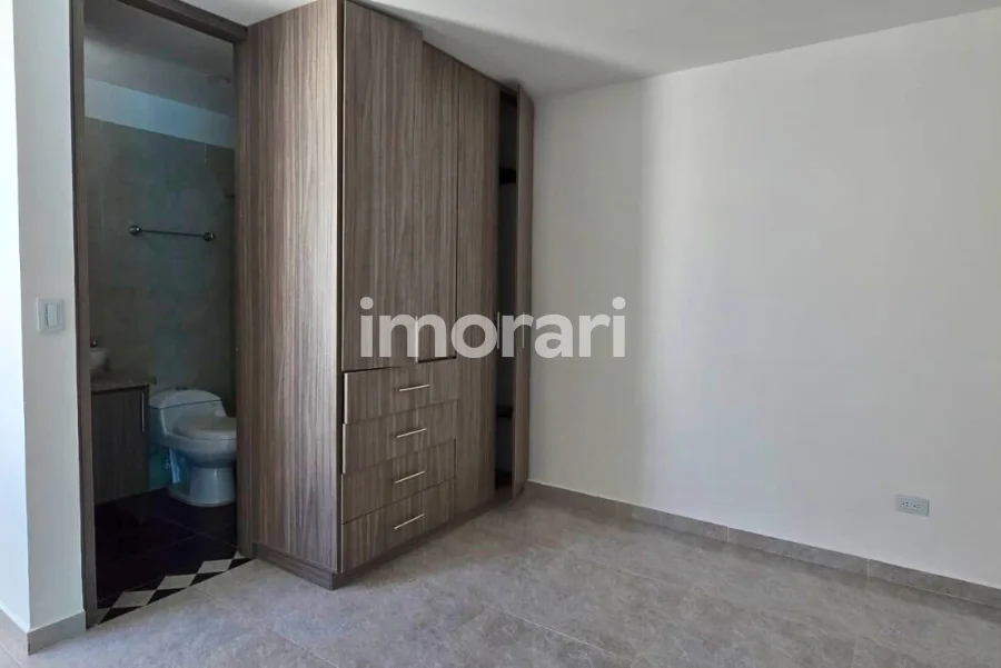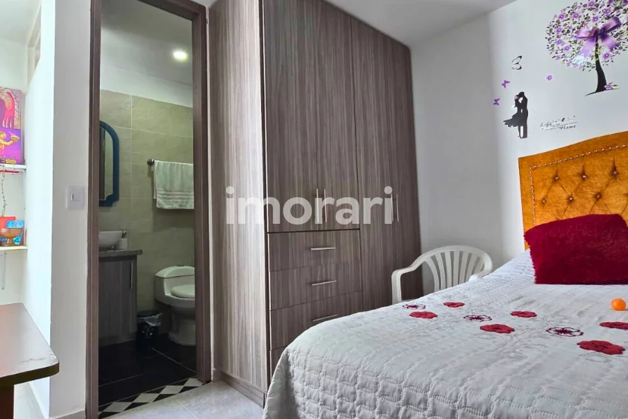 Cuenta con dos habitaciones con clóset, una de ellas con baño privado, además de baño social. Dispone de sala–comedor, cocina integral, patio de ropas y parqueadero para moto. Todo el apartamento está enchapado en cerámica.