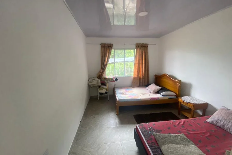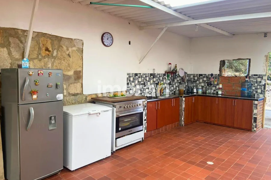La vivienda cuenta con 4 alcobas, 3 baños, sala-comedor, cocina, zona de ropas y parqueadero para varios vehículos. Además, dispone de un galpón para gallinas, árboles frutales y zonas de cultivo productivas.
