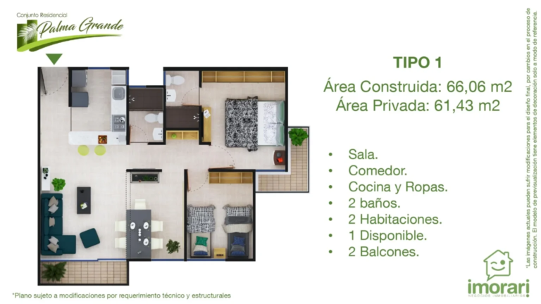 Palma Grande es un proyecto de apartamentos sobre planos que esta lanzando su segunda etapa en Fusagasugá, con áreas desde 60,10m² hasta 66.06m².